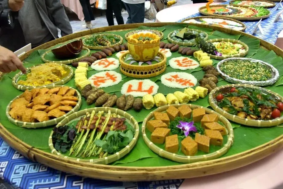 · 酸粥/簸箕宴:壮乡特色,糯米、腊肉、酸品摆满一簸箕,体验壮族待客之道。