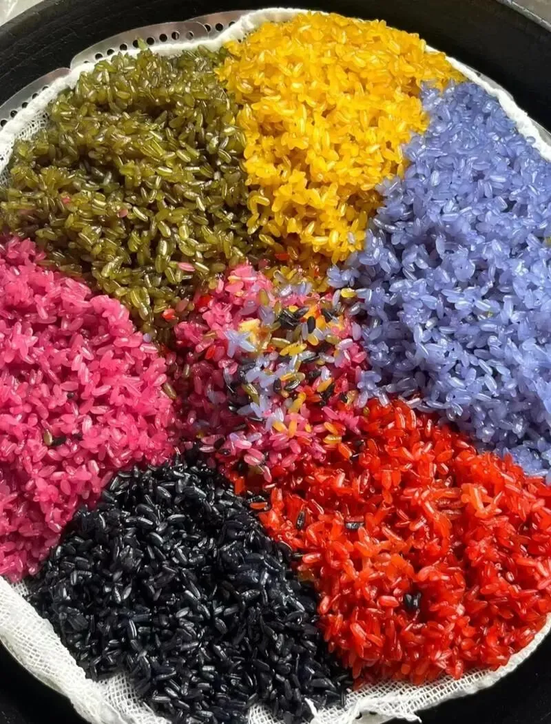 · 五色糯米饭:用天然植物染色,色彩斑斓,是壮族三月三的传统美食。
