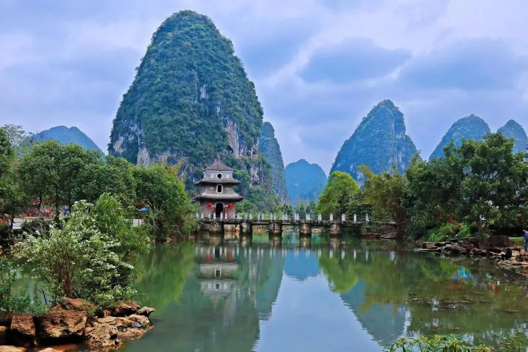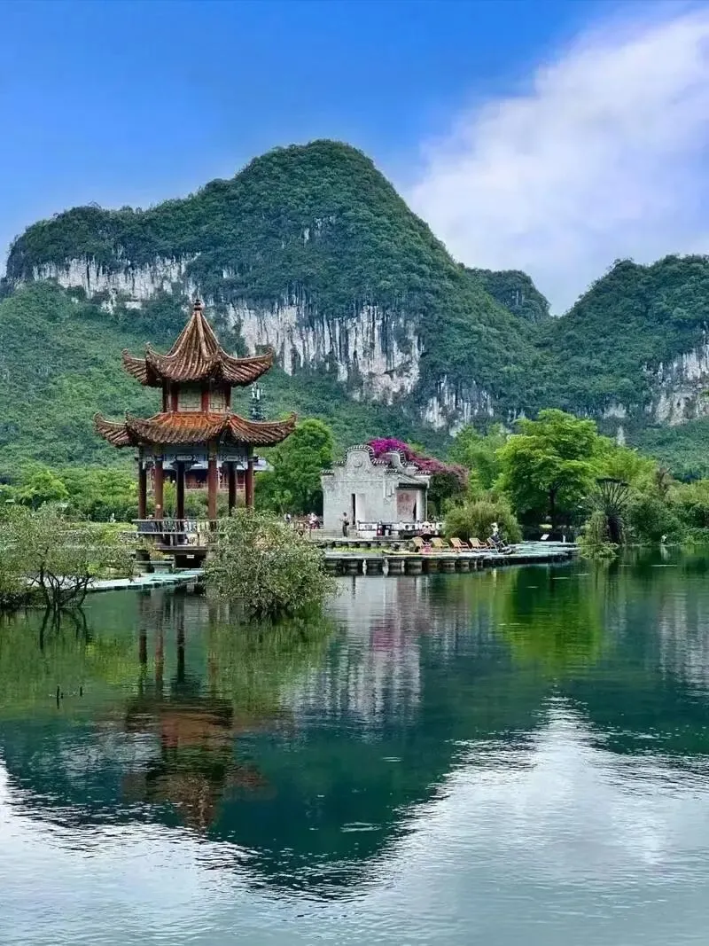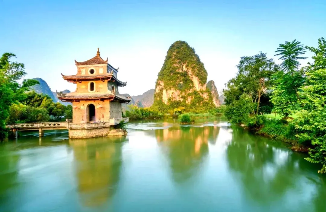 当鹅泉的碧波倒映着喀斯特峰林的千年守望