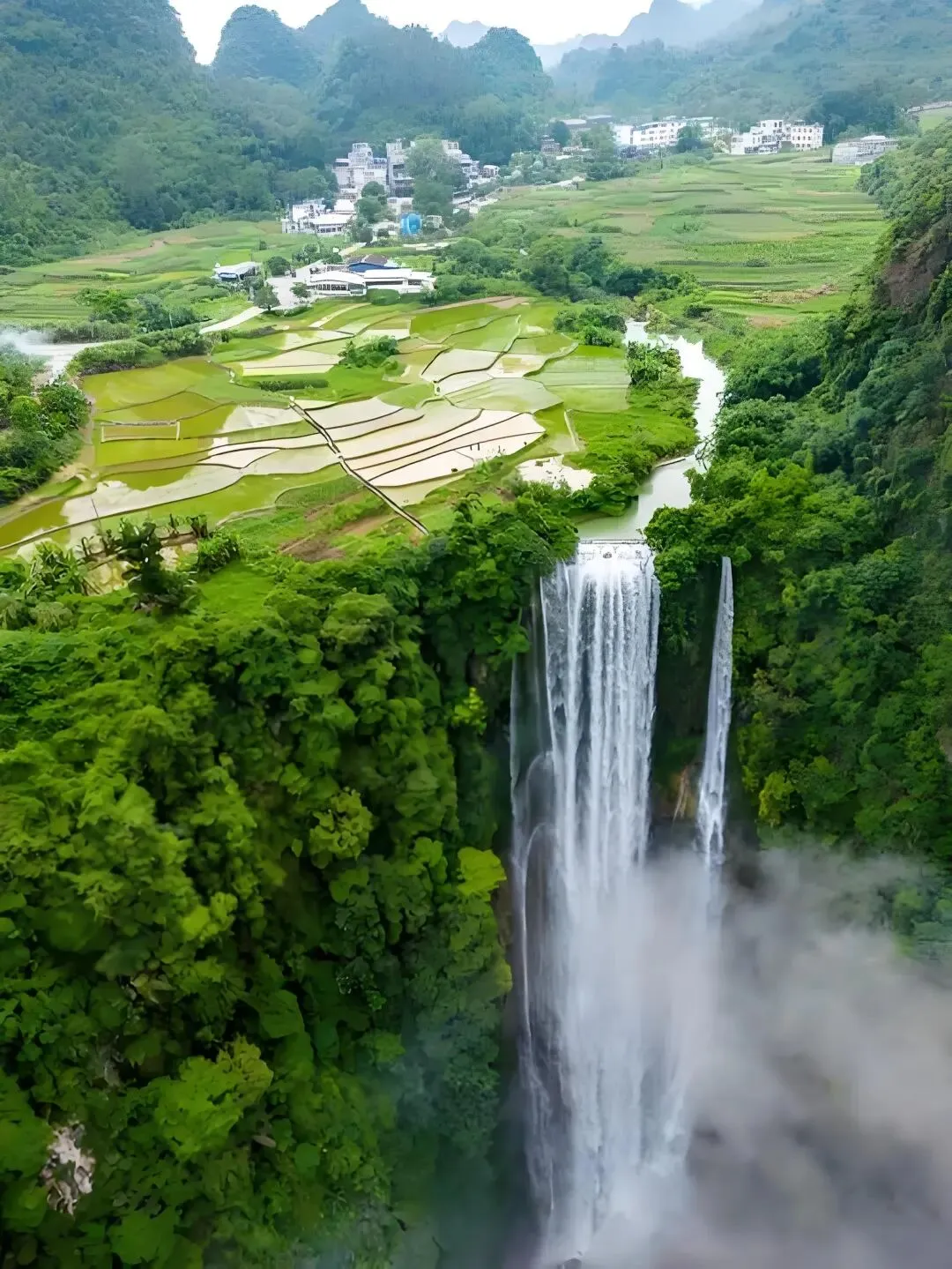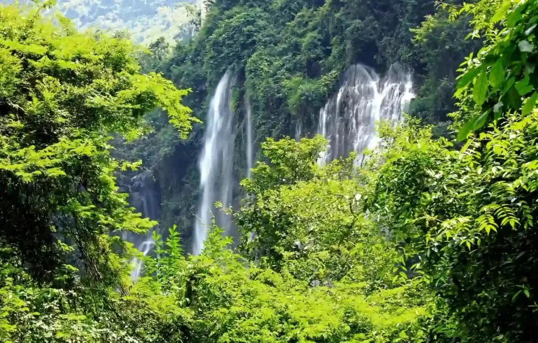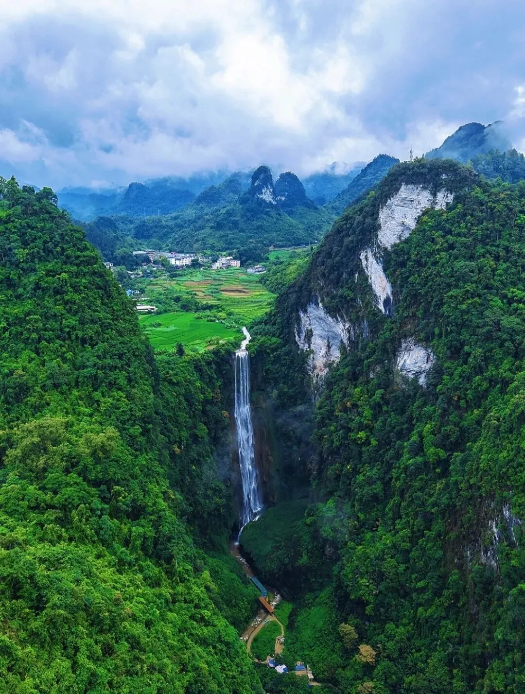 ✅免费野瀑布(三叠岭瀑布、二郎瀑布) :古龙山峡谷群对面就是三叠岭瀑布,无需门票,雨季时分水量充沛,三层水流连在一起,水雾能飘到几十米外。开车进村还能找到静谧的二郎瀑布,小众又壮阔。