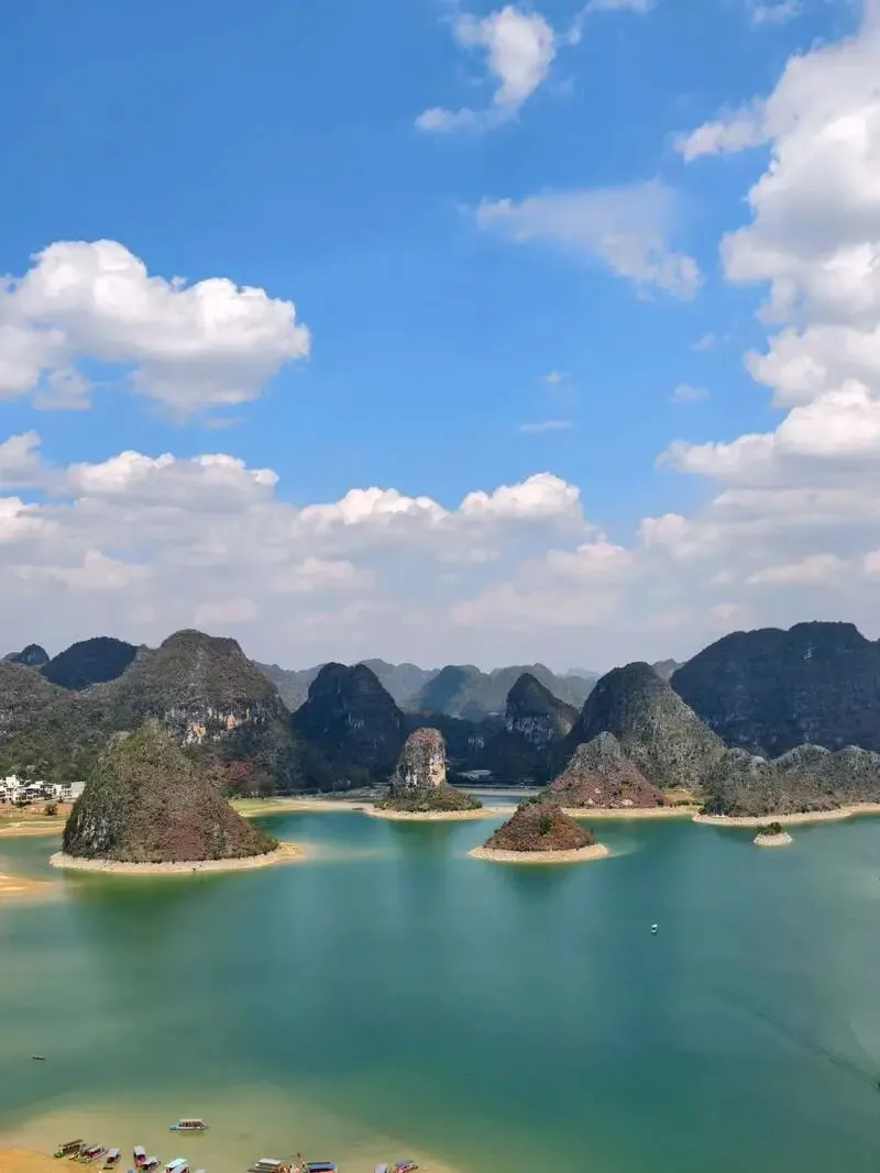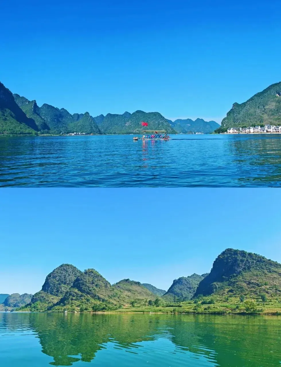 ✅渠洋湖:靖西的“水上桂林”。山奇水秀,蓝天下的湖水群山美翻,连广西本地人都啧啧称奇。可以乘船游湖,约1.5小时航程,岸边有村民游船,大约150元/艘(可坐10人)。湖边住宿可以早起看日出。