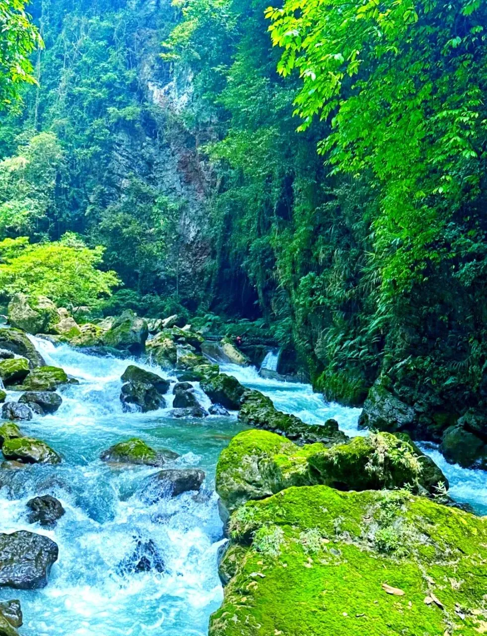 ✅通灵大峡谷:靖西招牌美景,走进峡谷瞬间被浓密原始森林包裹,气温直降5-8℃,天然大空调。沿步道穿行到底,高达188米的通灵瀑布从天而降,每逢丰水季水雾扑面、声如雷鸣。最神奇的是瀑布背后藏着水帘洞,沿着步道往里走就能进入这个“秘境中的秘境”,溶洞相连、钟乳石千姿百态,仿佛闯入地心世界。门票需购买,建议游玩2-3小时。