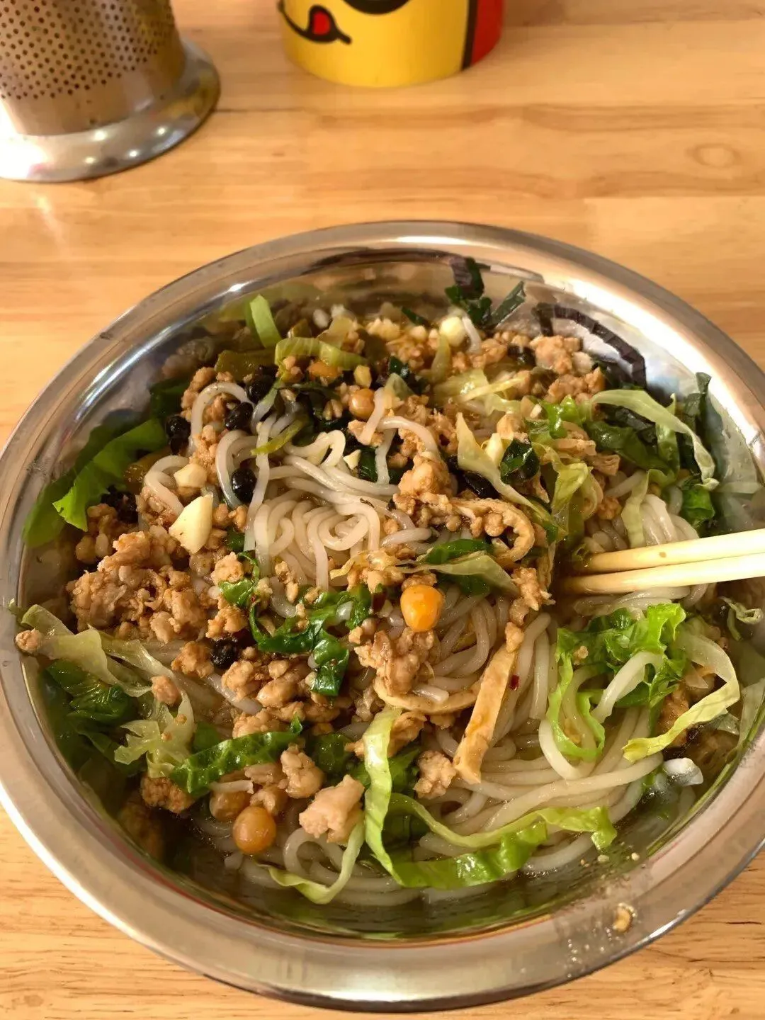 · 生榨粉:酸香开胃,酸笋一勺、牛肉臊两勺,额头立刻起汗。