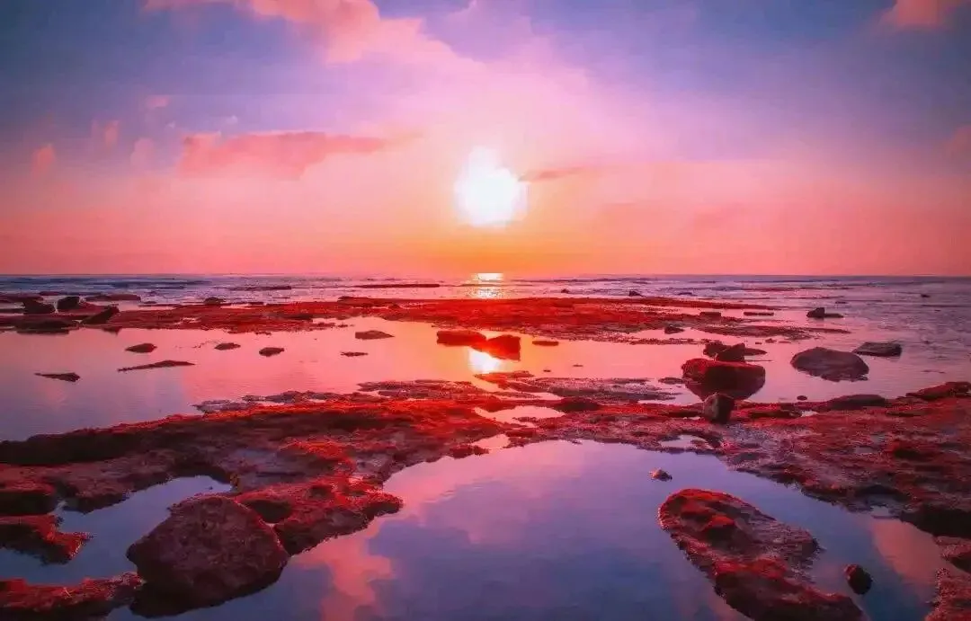 ✅五彩滩:看绝美日出!日出时分的滩涂波光粼粼,像撒了一地碎钻。这里是岛上最梦幻的日出观景点。