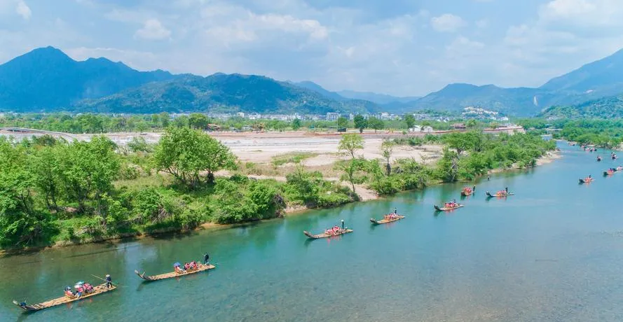 楠溪江竹筏漂流是最经典的体验项目,你坐在竹筏上,看着清澈见底的江水从竹筏下流过,两岸是绿油油的滩林和古朴的村落,这种慢不是现代人追求的那种慢生活,是农耕时代本来的节奏,江水该流多快就流多快,竹筏该漂多久就漂多久,没有刻意的设计,一切都是顺其自然。