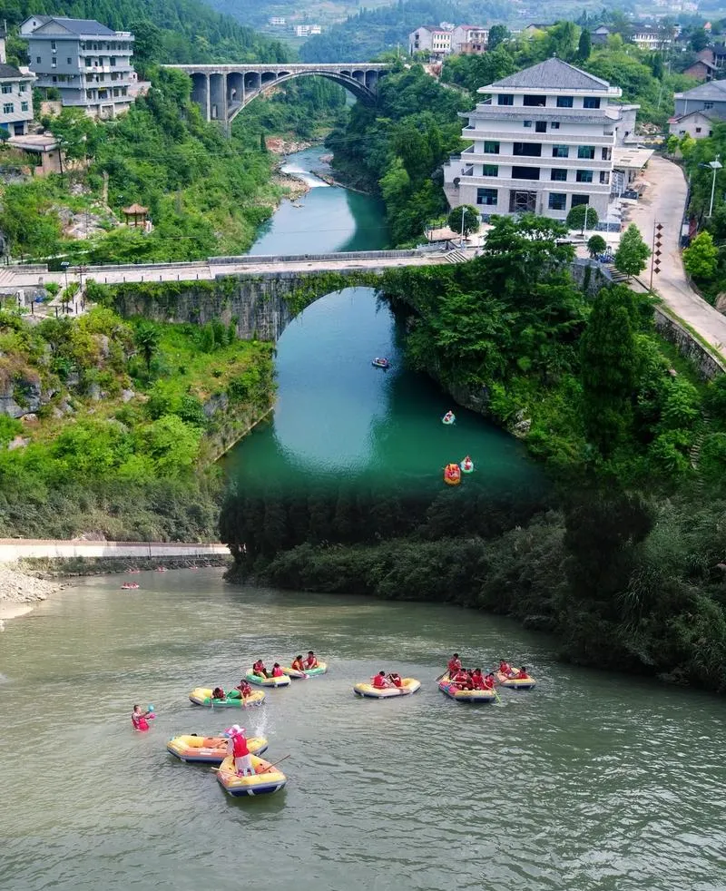 漂流最有意思的不是水流冲击,是沿途的风景,油溪河两岸都是山,植被覆盖率高,水质清澈,能看到河底的石头,有些河段会经过村庄,能看到村民在河边洗衣服、小孩在浅水区玩耍,这种生活气息是很多商业化漂流景区看不到的,你会觉得自己不是在玩一个旅游项目,是在体验当地人的日常。