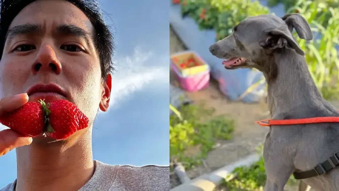 去年12月,彭于晏带着妈妈和狗狗们前往苗栗的蓁爱草莓农场采草莓,这家农场拥有30年的栽种经验,致力于生产好吃又无毒的草莓,天然的栽种模式也使草莓有着各式各样的形状,有机会摘到爱心形状的,也可能跟彭于晏一样找到草莓双胞胎~