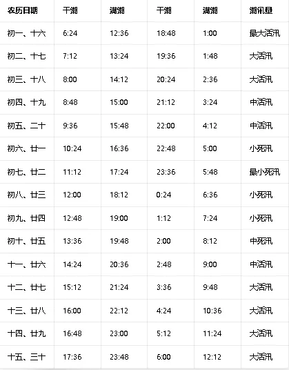 附荣成潮汐表