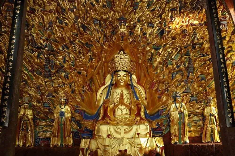 北山石刻,位于大足城北1.5公里处的北山。因观音造像众多,被誉为“中国观音造像陈列馆”。