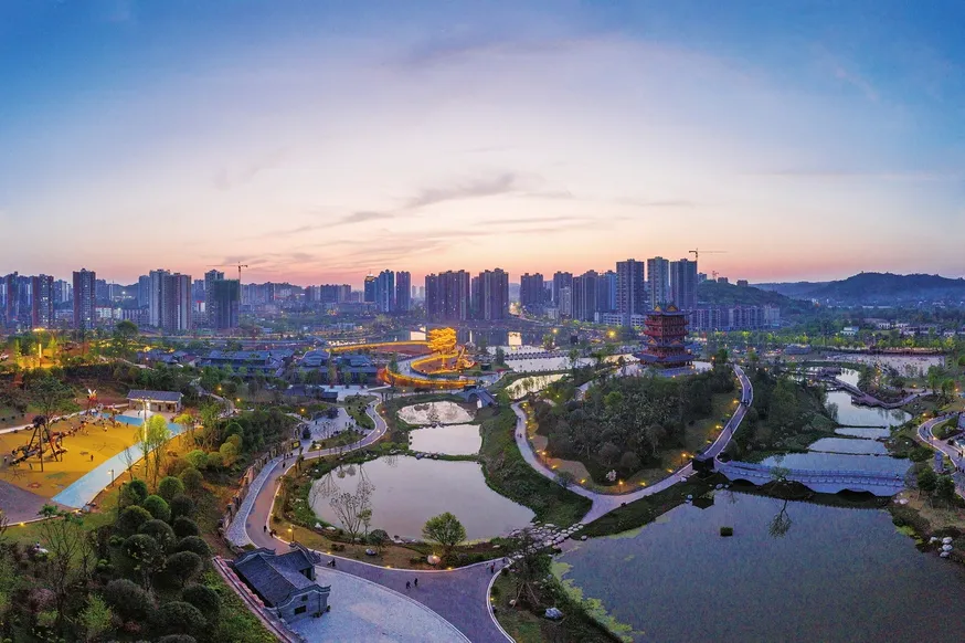 香国公园位于大足区濑溪河与化龙溪交汇处,是大足打造的集文化体验、度假旅游、休闲商业为一体的综合性城市生态人文公园。