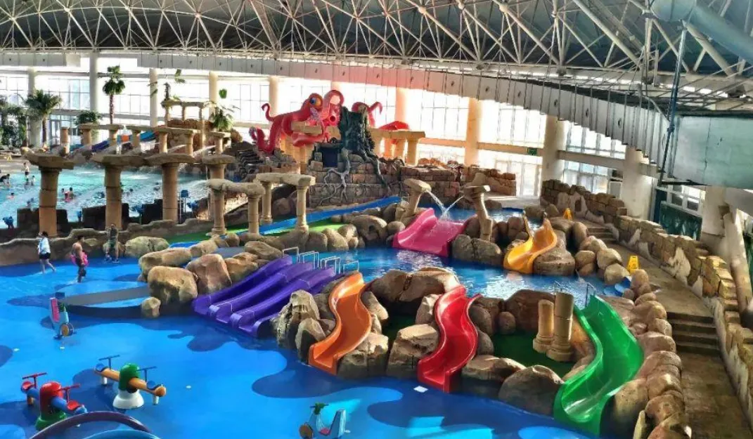 菲奢尔海景温泉源自 1600 米深海岩层,属于氟型淡温泉,水温 53℃,富含多种微量元素,美容养生超舒服。室内有热带雨林、溶洞、山林药浴、汗蒸等多元泡池;室外滨海汤池直面大海,一边泡泉一边看海,氛围感直接拉满。还有儿童专属戏水区,亲子玩水不担心着凉。