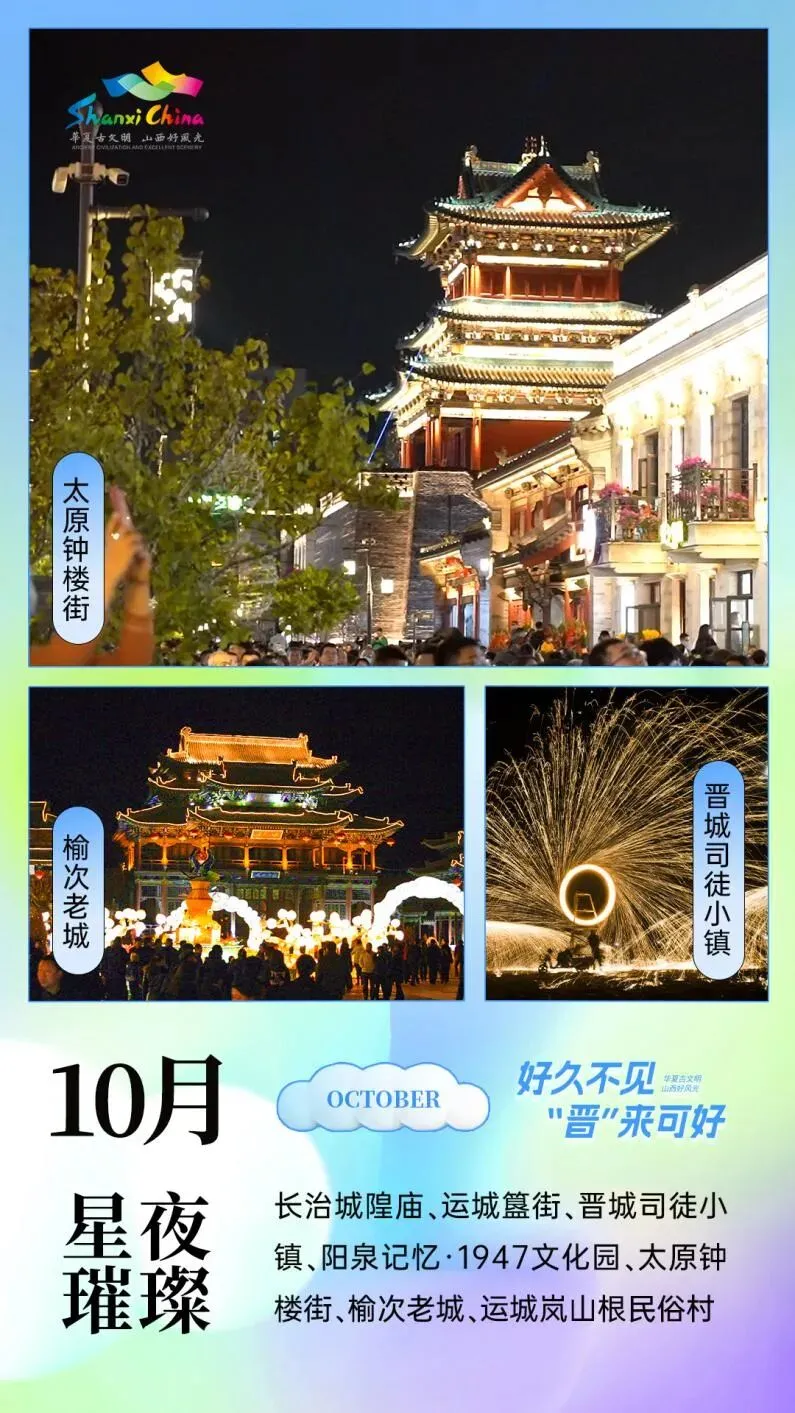 “人间烟火气,最抚凡人心”。不能放过十月黄金周这个完美假期,去逛逛山西的夜市吧!长治城隍庙凝聚了上党悠久历史,运城簋街人潮涌动,处处烟火气;晋城司徒小镇民俗风味浓郁,打铁花算是一绝;阳泉记忆·1947文化园工业颇具风情,更是年轻人爱去的网红打卡地;钟楼街新与旧的结合和碰撞,让老街焕发活力;那般晋商风韵才是榆次老城的灵魂。