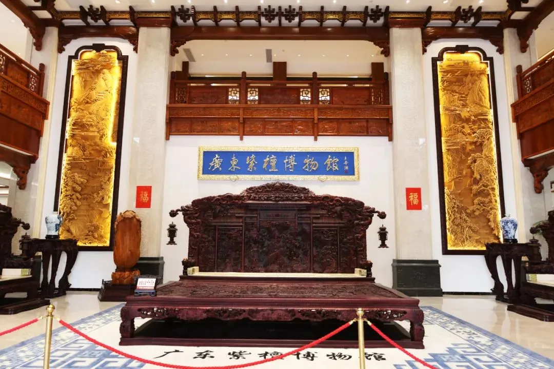 紫檀木是一种极为名贵的木材,其生长缓慢,木质坚硬致密,纹理纤细,色调深沉,稳重大方,被视为木中之极品,有“一寸紫檀一寸金”的说法。该馆展览面积近6万平方米,设有收藏珍品展示区、现代精品推广区、文化传承与传统技艺体验区等三大区域,馆内收藏藏品超360件/套,大部分藏品由福木源家具收集与原创制作。不少藏品更“身价过亿”,展示着中国传统红木家具的高超制作技艺和深厚文化底蕴。