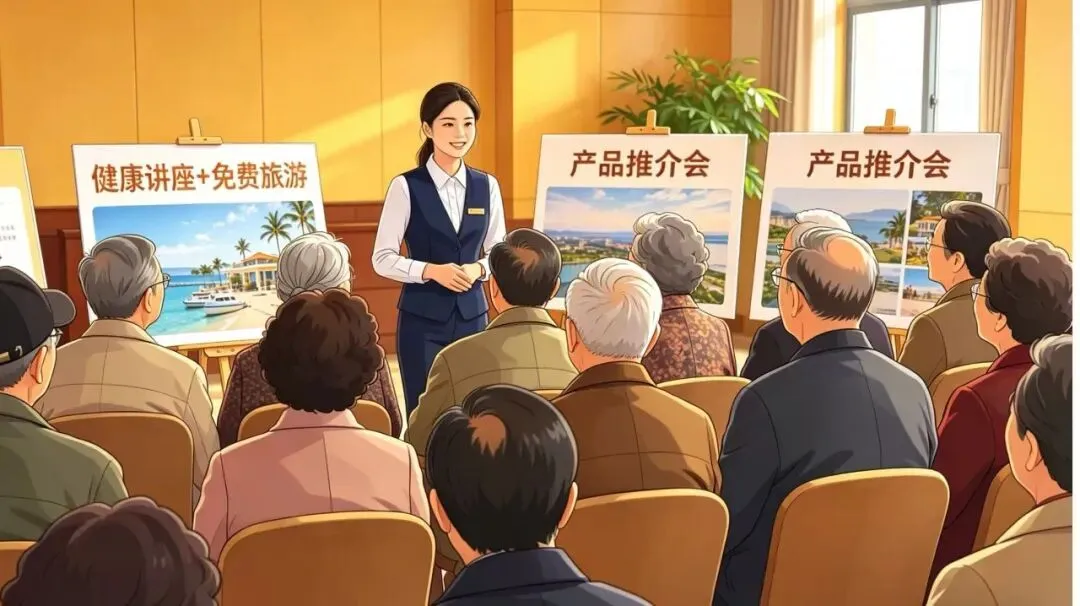 注意以“分时度假会员”“旅游养老投资”“旅游+金融”等为名的新型骗局,承诺“免费旅游+年化收益”的旅游产品,尤其警惕针对老年人组织“健康讲座+免费旅游”“产品推介会”等名义的旅游活动。