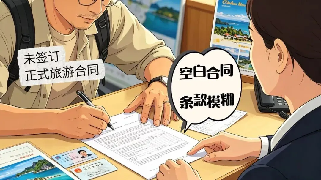 未签订正式旅游合同,或提供空白合同、条款模糊(如未明确住宿标准、购物停留时间、交通方式、自费项目等核心条款),会导致法律责任不明确,遇旅行社擅自变更行程、增加购物环节、转团拼团等问题,游客权益难以保障。
