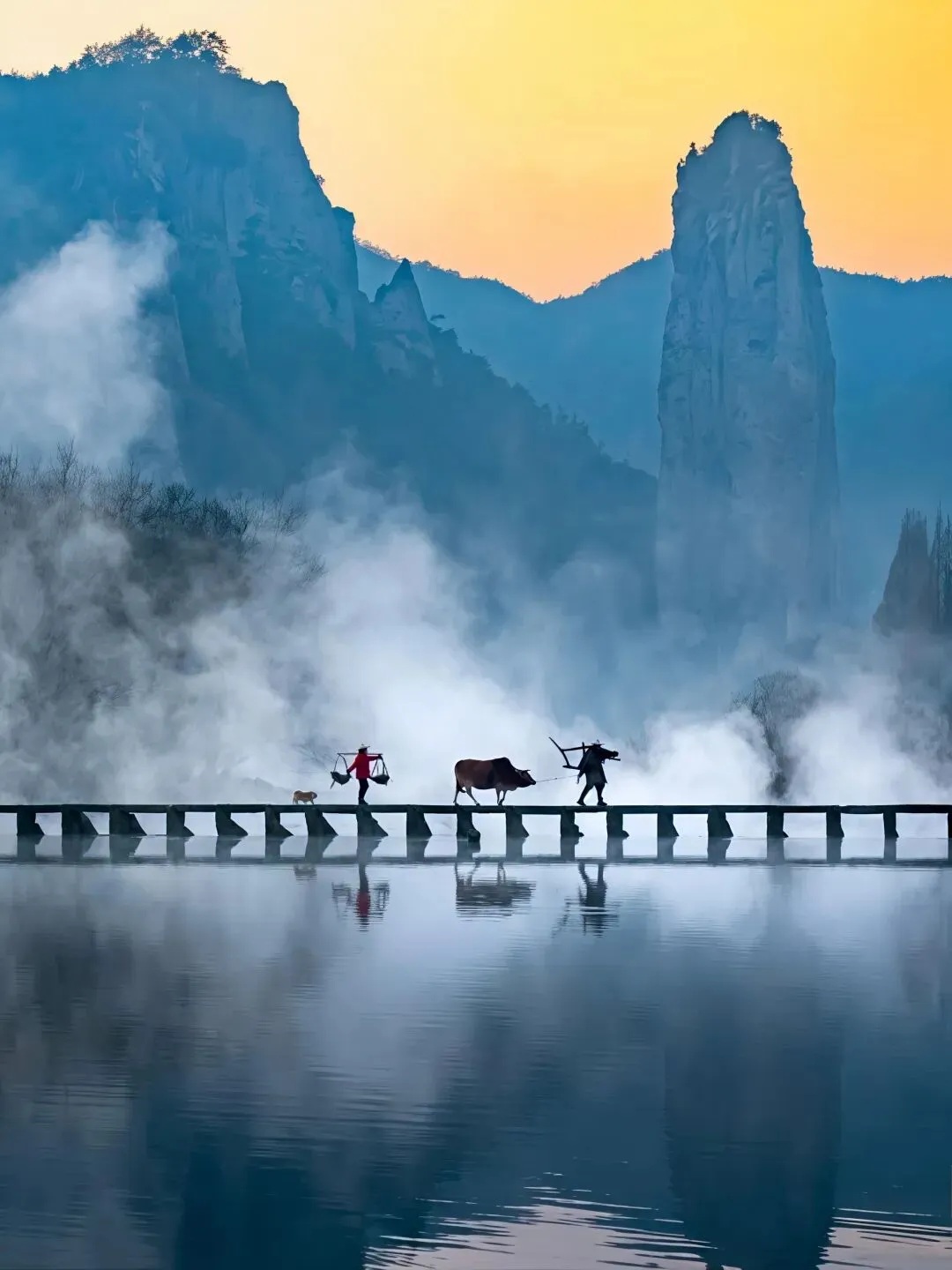 这里是《花千骨》《仙剑奇侠传》《天龙八部》等数十部古装剧的取景地,鼎湖峰拔地而起直刺云天,是黄帝炼丹升天的传说圣地;九曲练溪绕着青青田园流淌,老农牵着黄牛走过石板桥的画面,就是刻在中国人骨子里的水墨江南。清晨云雾绕山的时候,站在仙都观景台望去,真的会误以为闯入了仙人隐居的桃花源。