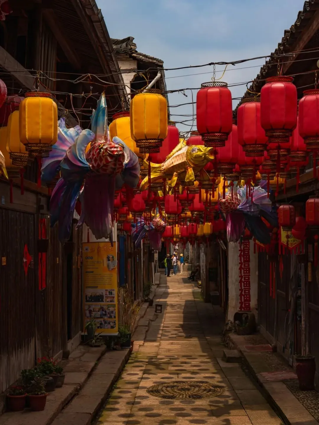 始建于五代末期的古村落,足足一千多年历史,这里保存着1500多间明清古宅,“八泻门”的马头墙高低错落,砖雕木雕每一处都藏着古时工匠的巧思。走在鹅卵石铺就的古巷里,能看到老人坐在门口择菜,大黄狗趴在墙根晒太阳,没有过度商业化的喧嚣,只有慢得让人安心的烟火气,随手一拍都是充满质感的复古大片。