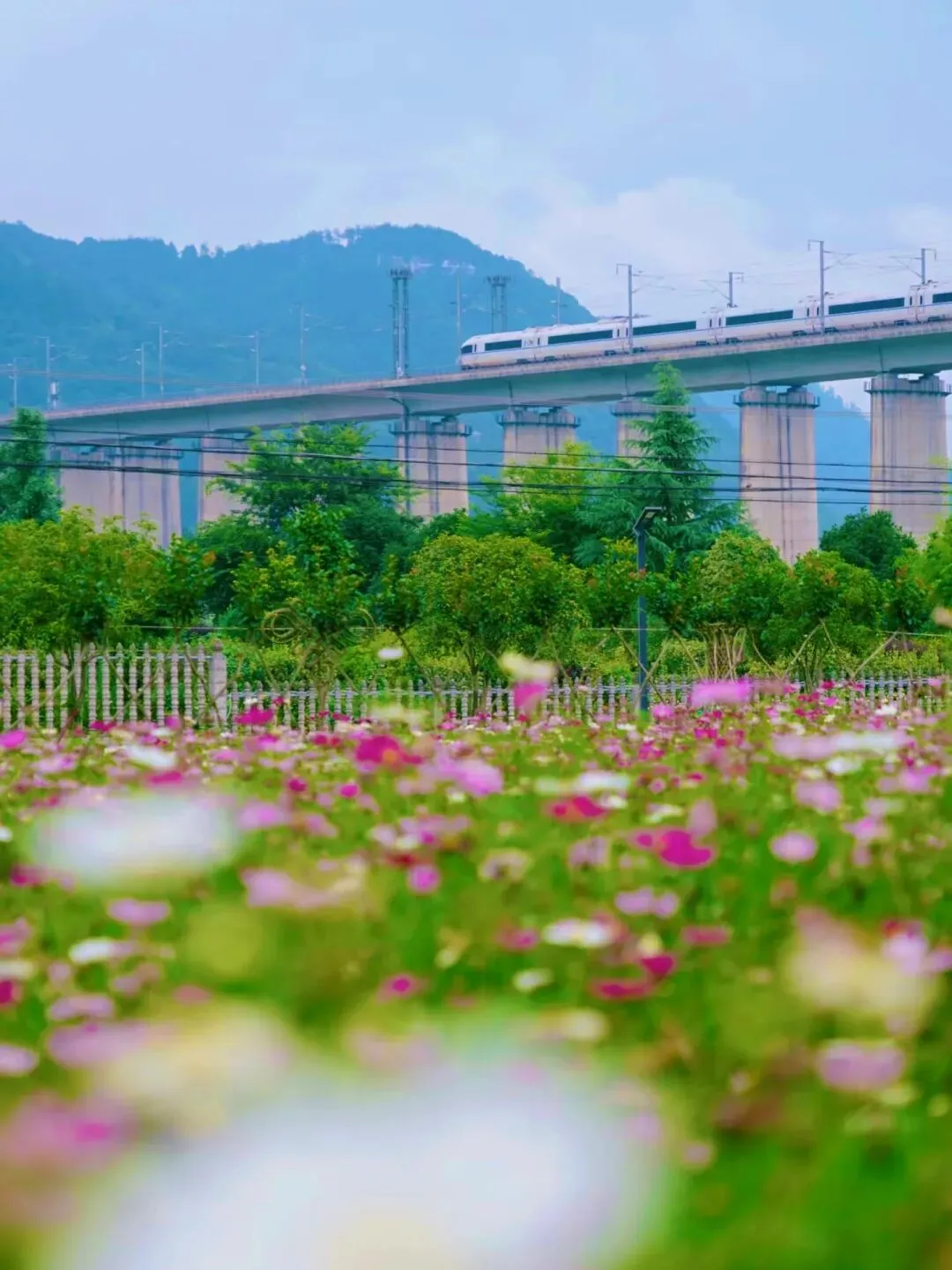就在缙云新建镇,春天的笕川花海开满了波斯菊、郁金香、紫藤花,轨道小火车慢悠悠穿过花田,坐在车上吹风看景,不管是亲子游还是拍美照都超合适。离河阳古民居只有十几分钟车程,逛完古村刚好来这里休闲放松。