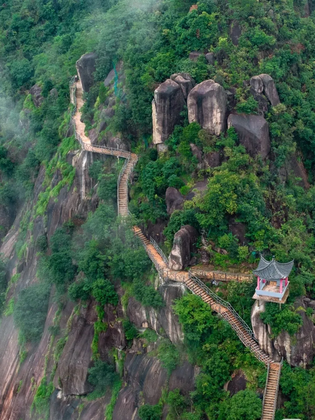 峡谷两边都是陡峭的火山岩绝壁,蛟龙溪沿着峡谷蜿蜒流过,最出名就是架在300多米高空的玻璃桥,站在桥上低头就能看见深谷溪流,风一吹桥身轻轻晃,胆子大的能体验一把“云端行走”的刺激。除了玻璃桥,沿着栈道徒步能看遍峡谷的奇峰怪石,春天山谷里开满野杜鹃,山风穿峡而过,跑完马拉松来这里舒展筋骨再合适不过。