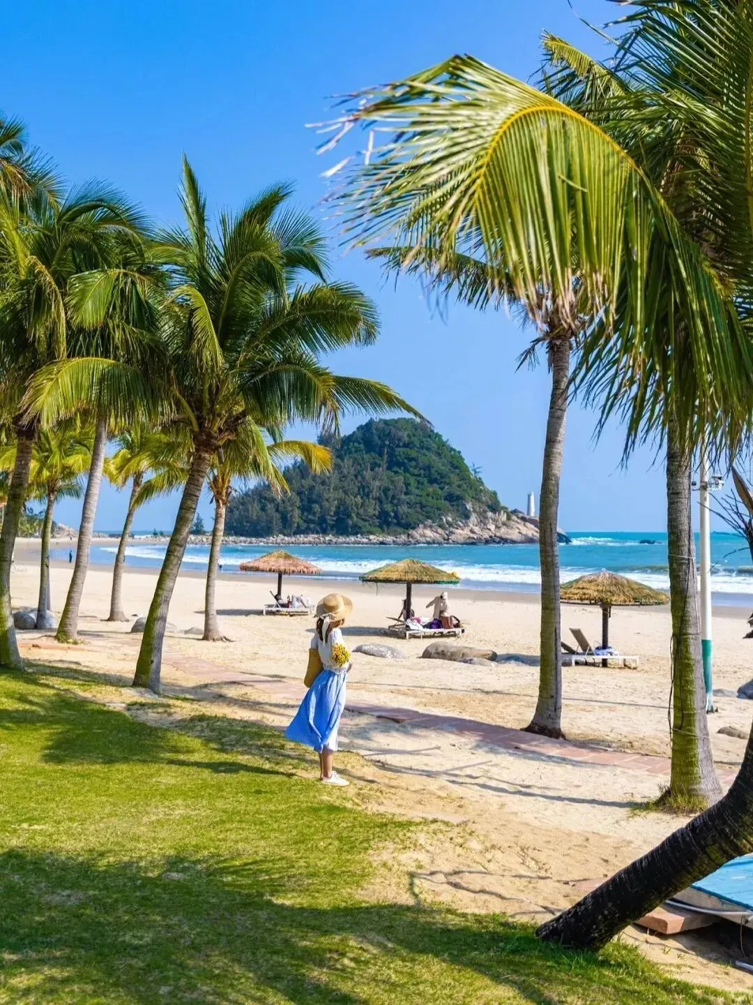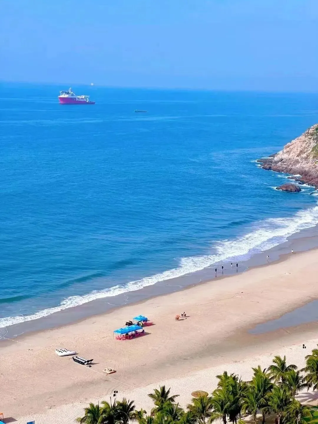 海陵岛最热闹的地方,必然要数大角湾沙滩,这里一半椰影摇曳,一半碧蓝海天。