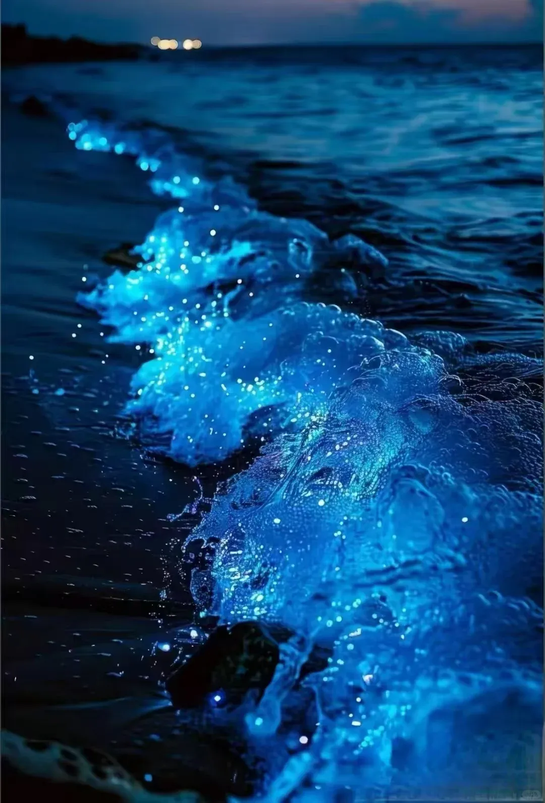 这里还是偶遇蓝眼泪的高频地。会释放幽蓝色荧光,仿佛碎钻洒入海中,浪漫到窒息!