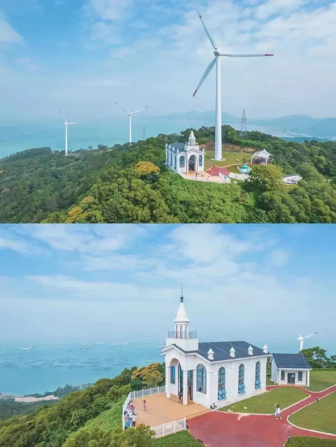 这里很适合来登高远眺,有连绵的山,有无垠的海,还有大片悠悠转动的风车,一秒将你拉入漫画场景里。