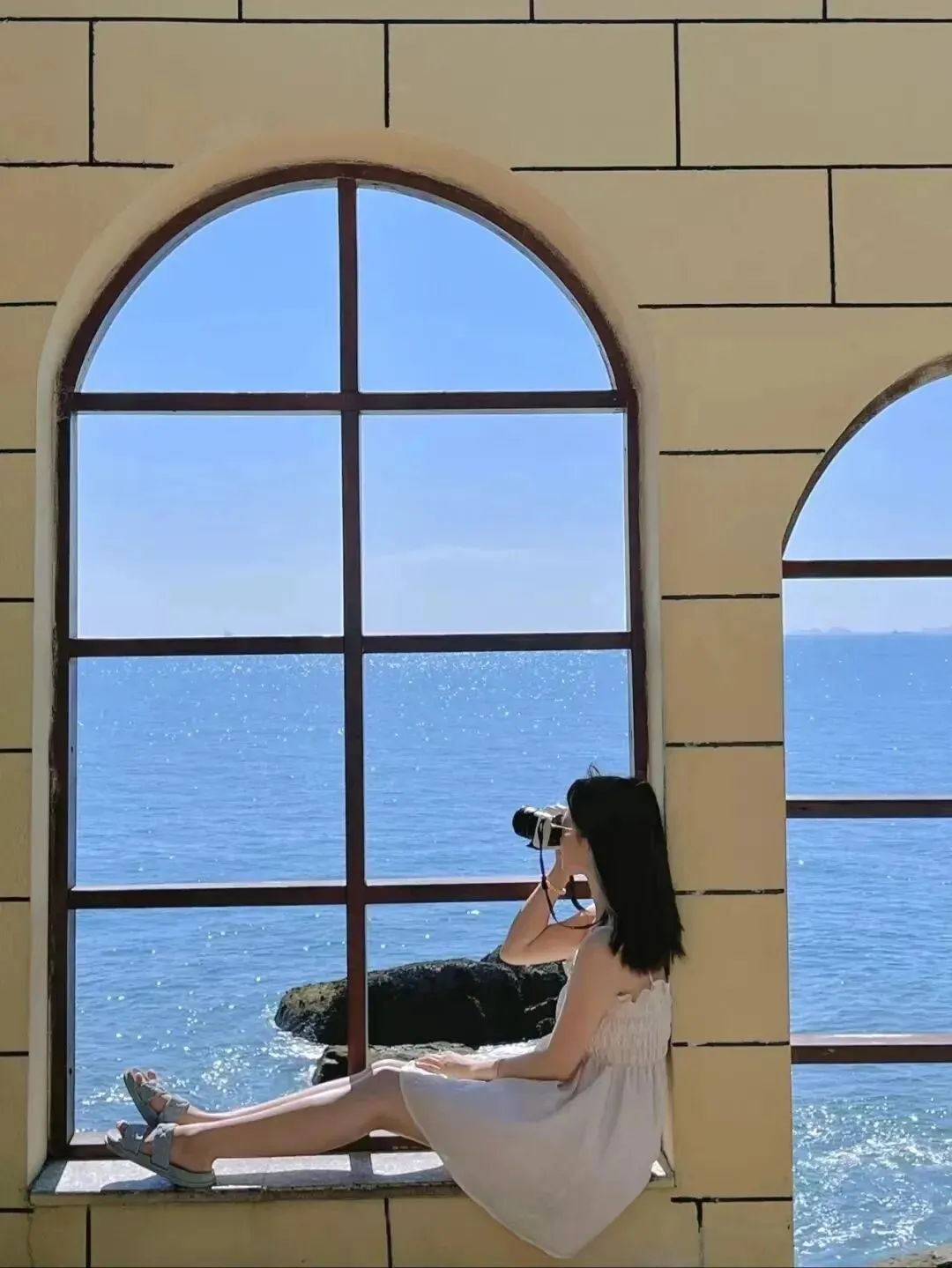 一扇简洁的落地窗,正对着盈盈的大海,在每一个晴天里,窗外的海水都像是可触碰的蓝,跃动着细碎的波光,随手一拍都是文艺大片。