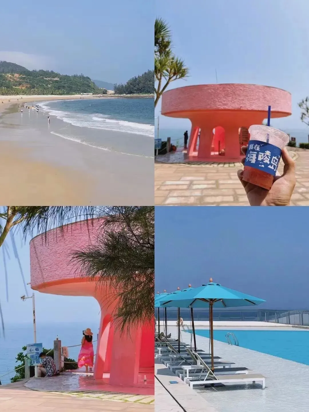 这里还散落着超多网红的拍照点,可以一路走一路拍,有绝美的悬崖秋千,有粉红的童话屋,映衬着湛蓝的海,怎么拍都好看。