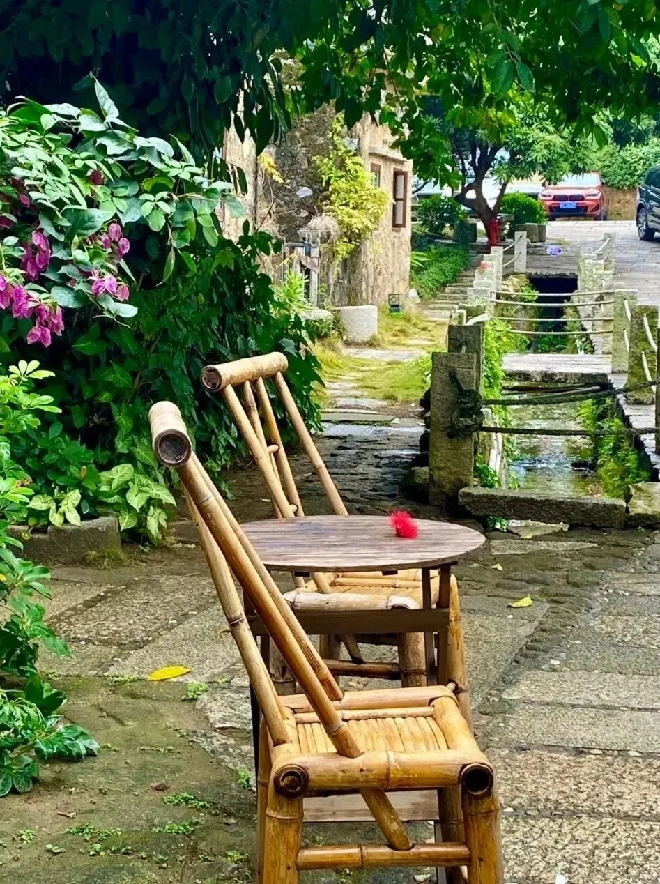 村口是小桥流水,行过长长的青石板巷,便能遇见繁茂的古榕树,宁静的艺术馆。走累了,就坐在树下的木椅上,和当地人聊聊天。