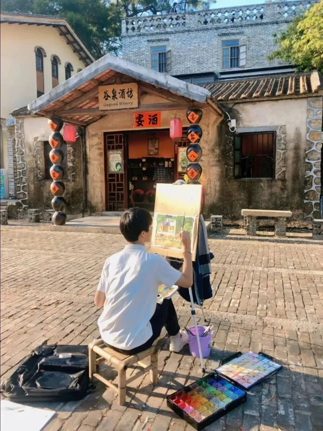 有桥有水有古榕树,鲜花爬满了屋檐和庭院,不时还会偶遇写生客,坐在院落前,一笔一画地勾勒着,眼前景就成了画中境,将静好的岁月一点点存放。