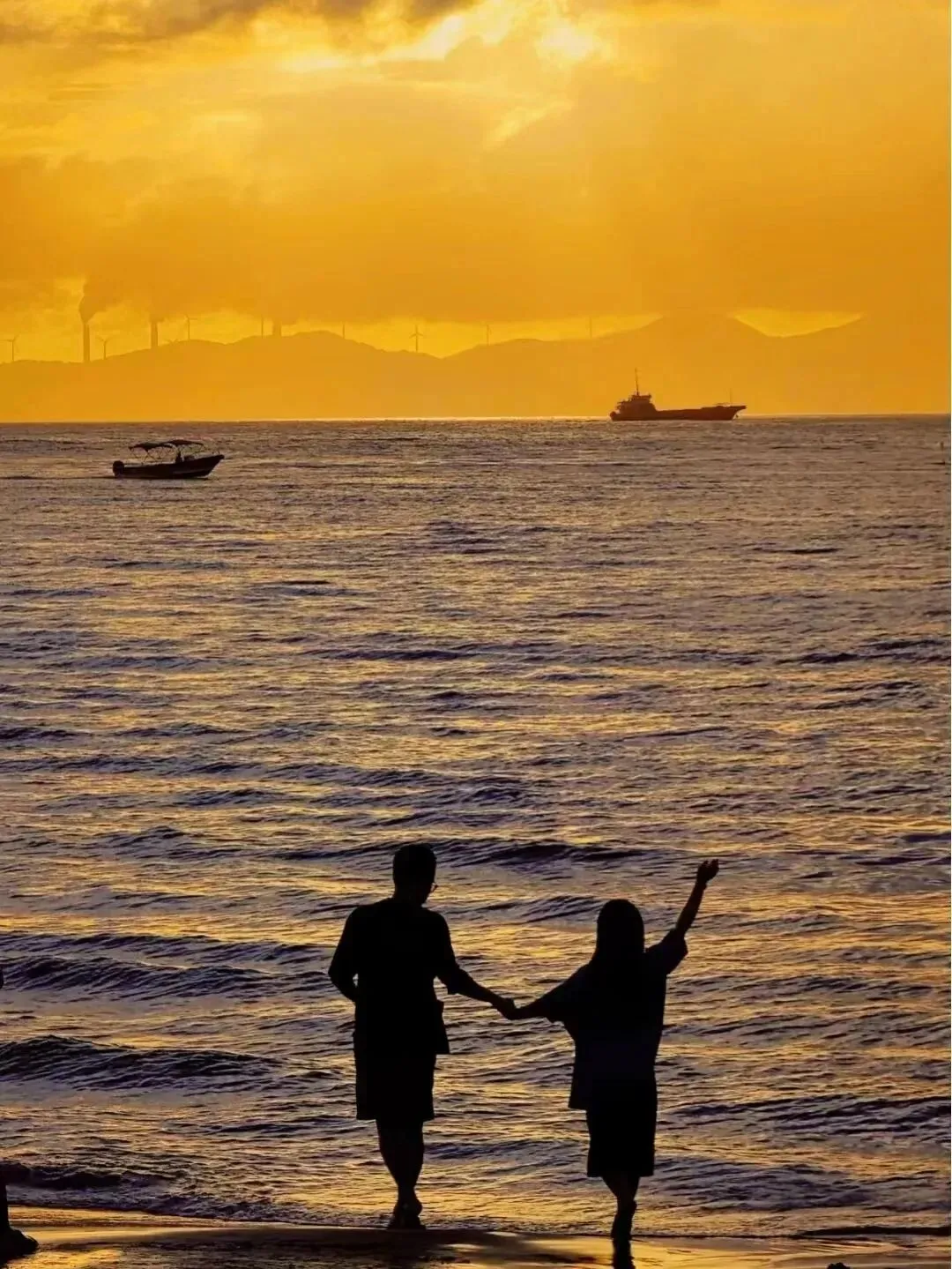明艳的霞光会飘满天际,归来的渔船一点点拉长了影子,整片海面都沐浴在霞光里,宛如一幅流动的油画。