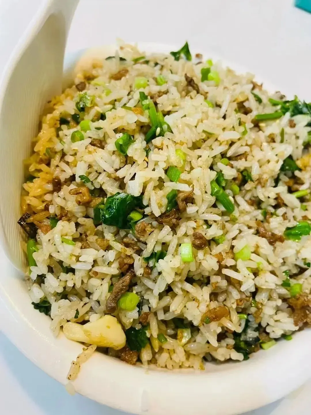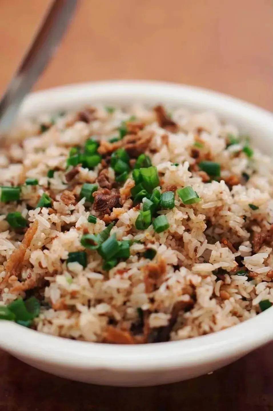鹅肉的油脂和鲜香,也早已丝丝缕缕地渗入了米饭之中,在葱花的点缀之下,舀上一大口,满是鹅肉的油润甘香和米饭的粒粒分明。