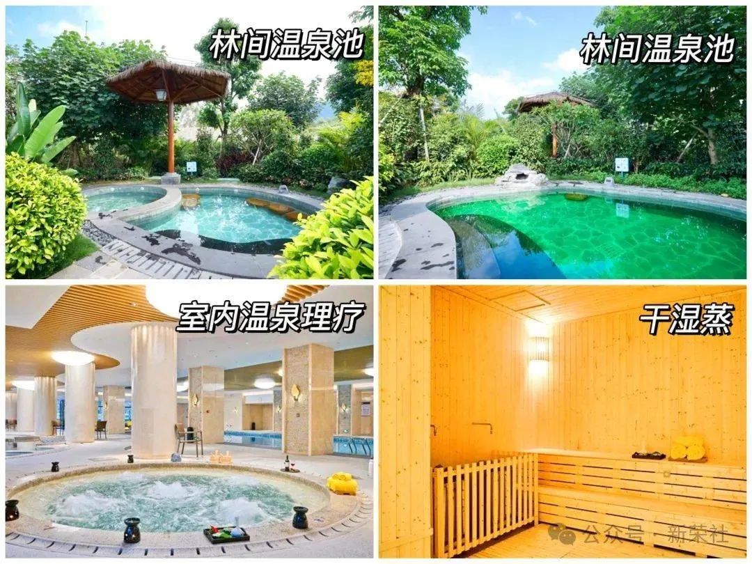温泉区由室内温泉、室内外温泉、干湿蒸、和休息区组成,室外温泉重点推荐特色鸟巢温泉