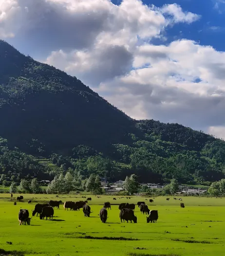 第六站:文海村——被遗忘的高山草甸这是我私藏的宝藏!位于玉龙雪山脚下,是一个未被开发的原始村落。春天有花海,夏天绿草如茵,牛羊成群,秋天有红草地。这里没有游客,只有纯粹的田园风光。您可以在草甸上露营,看星空银河。游玩策略: 路比较难走,建议包车或自驾越野。这里海拔高,紫外线强,防晒必须做足。