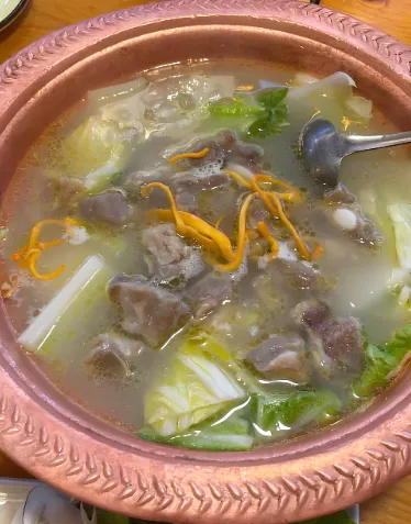 第一美食:黑山羊火锅这可是丽江的“肉类之王”。羊肉紧实鲜嫩,毫无膻味,带皮吃更是胶原蛋白满满。我在象山市场附近的“阿婆黑山羊”吃的,那锅汤乳白浓郁,喝一口暖到胃里。一定要点一份“羊血”,嫩得像豆腐。推荐: 象山市场周边,人均80元左右。