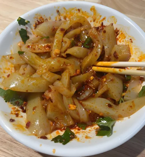 第三美食:鸡豆凉粉这是丽江特有的黑色凉粉,由鸡豆(黑豌豆)制成。切成条,油炸得外焦里嫩,或者凉拌加辣椒油。我在四方街的小摊买了一份,5块钱,吃得满头大汗,却停不下来。推荐: 路边流动摊贩,认准黑亮的颜色。