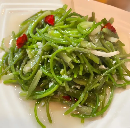 第五美食:水性杨花学名叫波叶海菜花,生长在纯净的湖水中。花瓣洁白,花蕊鹅黄,口感像空心菜但更丝滑。只有水质极好的地方才有,是环保的试金石。清炒或者做汤,清爽解腻。推荐: 高端餐厅如“滇西王子”有,或者拉市海周边的农家乐,时令价约38元。