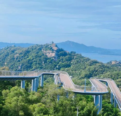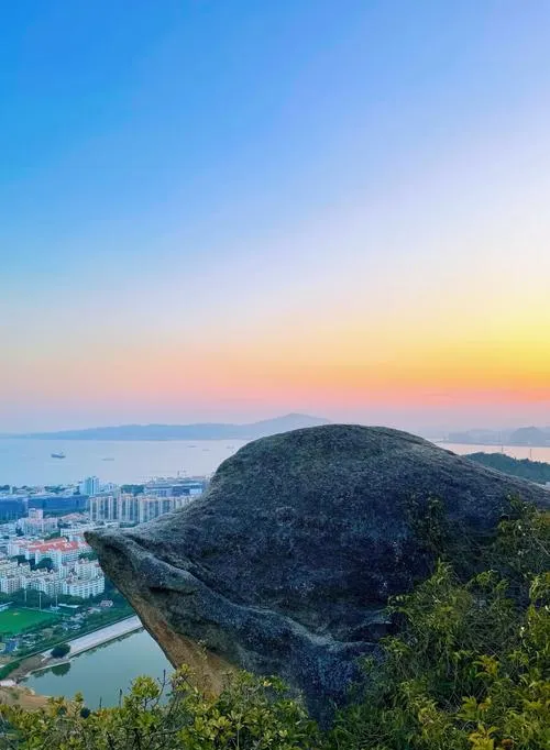从观音寺再往上走大概二十分钟,就能到云顶山的最高点,这里有个观景平台,站上去的那一刻你会突然明白为什么那么多人愿意专门来爬这座山,因为视野是真的开阔,整个厦门岛的轮廓、海湾的弧线、远处的鼓浪屿、还有海面上穿梭的船只,全都铺在你眼前,那种感觉不是"哇好美"就能概括的,是一种突然被拉高的视角给你带来的认知冲击。