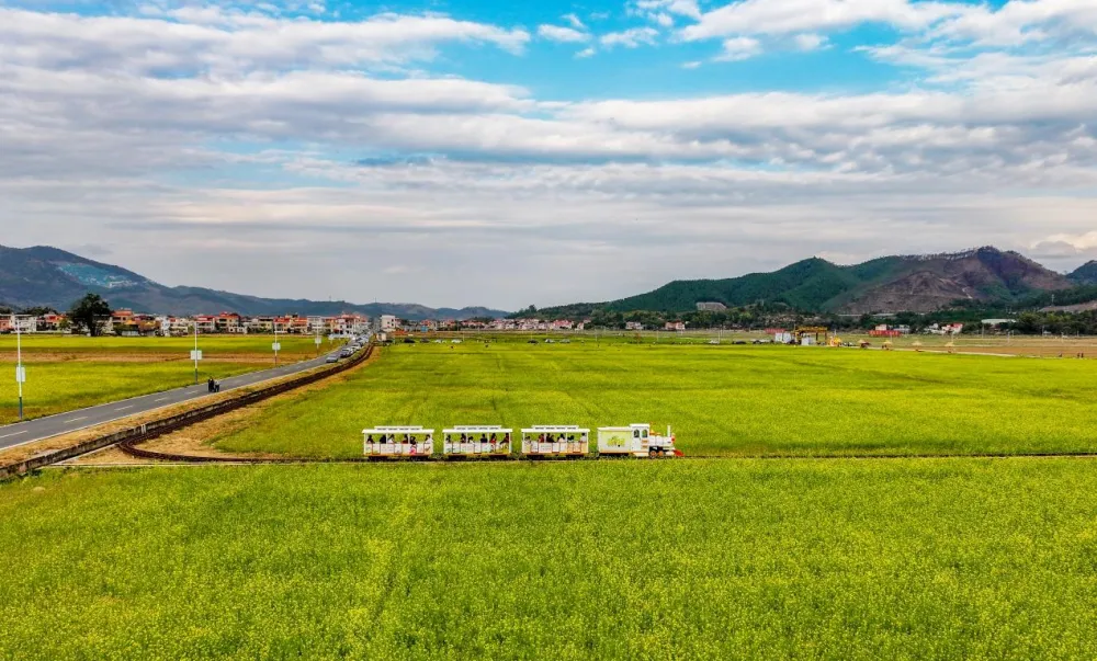 闲置资源摇身变为 “黄金消费场景”。广东东源县柳城镇以万绿智慧无人农场为依托,将连片冬闲田打造成规模化油菜花海景观带,同步配套 “稻城号” 观光小火车、稻田观景台等轻资产打卡设施。春节假期期间,当地日均接待游客量达 2 万人次,仅观光小火车项目单日营收就突破 1 万元。这种 “农业基底 + 景观营造 + 轻量体验” 的创新模式,既不破坏耕地性质、不占用新增建设用地,又以最小化投入实现了农业生产与文旅消费的双向赋能、双重收益。
