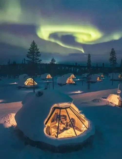 芬兰也是北欧几个看极光的好地方之一,芬兰北极圈内的拉普兰地区十分适合观测北极光,最佳的观测时间是相对晴朗的秋季,大约从9月开始,持续到每年的11月。透过玻璃穹顶的冰屋酒店,游客还可以躺在床上欣赏美丽的极光,绝对是一场难忘的体验。