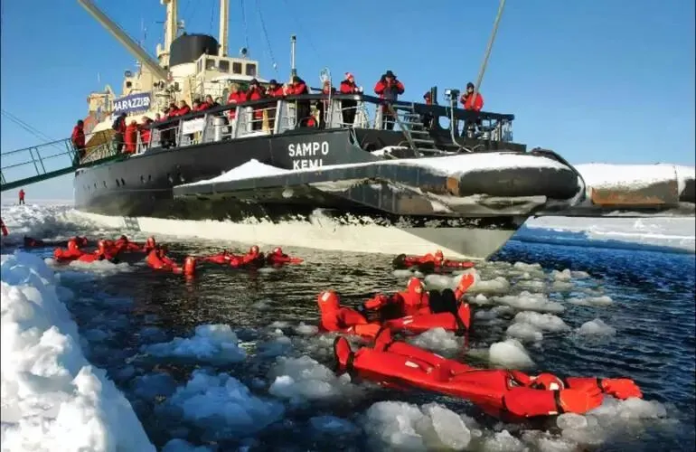 特色:世界上唯一面对游客的破冰船旅游团,从凯米以南15公里的港口出发,可以参观船舱,体验橡皮衣下水,还有晚宴等活动,夏天破冰船会变成酒吧对外营业。