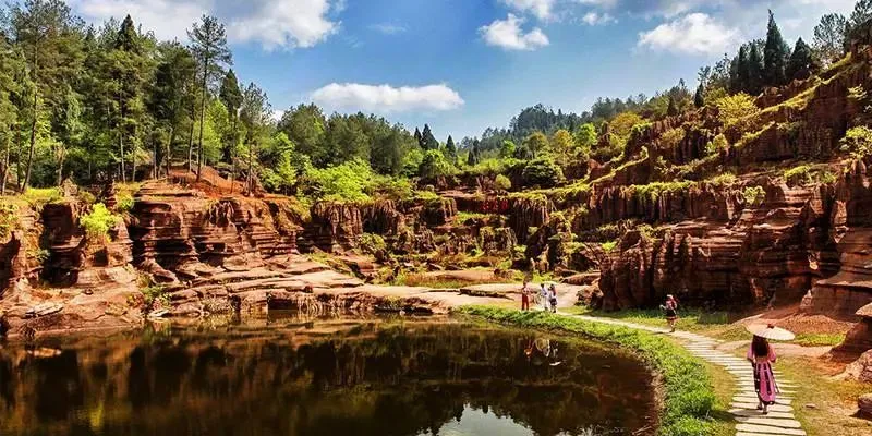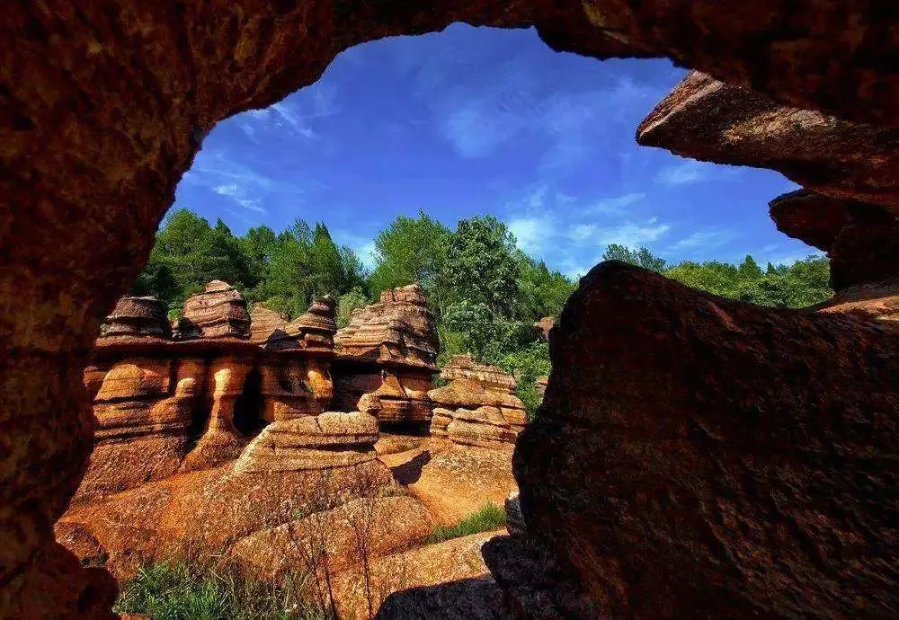 它是全球唯一在寒武纪形成的红色碳酸盐岩石林景区。五亿年前的这里,还曾是一片浩瀚的海洋。 岁月流逝,蓝色的波涛虽已不在,却在石林上留下了一道又一道痕迹。