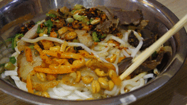 这里的米粉还无辣不欢,加上酸萝卜和码子,拌一拌再入口,马上辣得你嗷嗷叫却又舍不得放手。