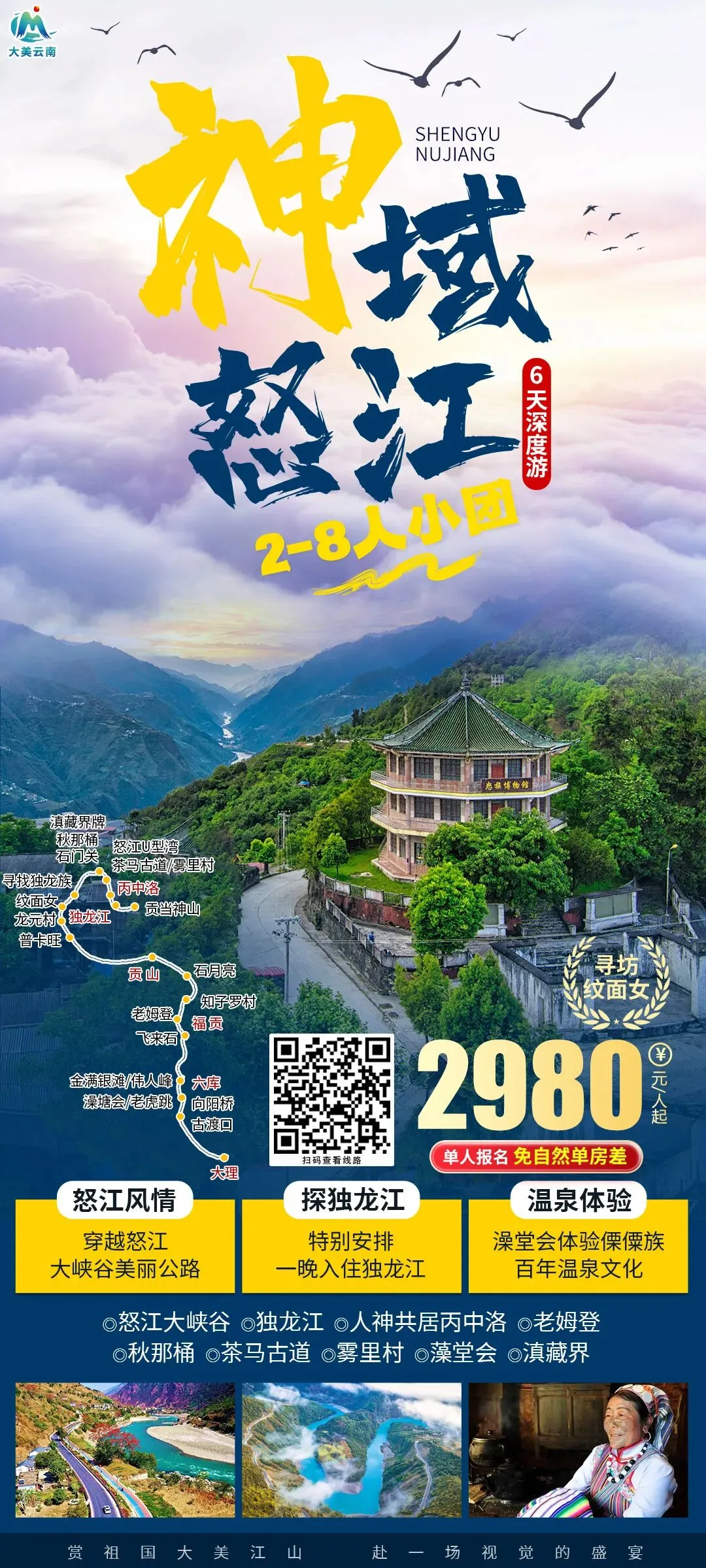 活动主题:怒江大峡谷、独龙江、丙中洛、老姆登、知子罗、茶马古道、秋那桶、雾里村、贡当神山、澡塘会、滇藏界