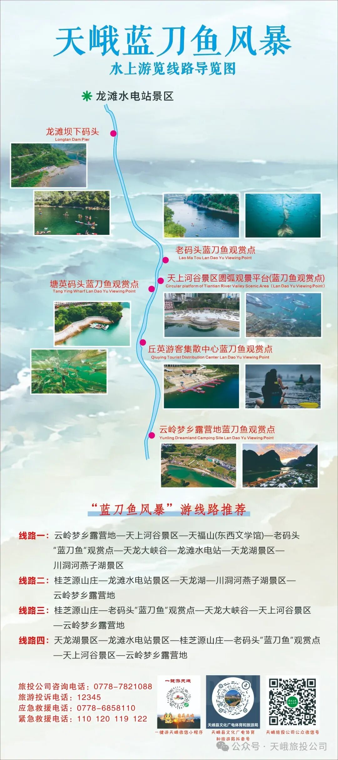 最佳观赏点📍 龙滩坝下码头|县城老码头|塘英码头 | 天上河谷圆弧观景平台 | 云岭梦乡露营基地 | 旅游集散中心(丘英)码头。✨ 亮点:银鳞鱼群如水下龙卷风,随手拍出春日大片