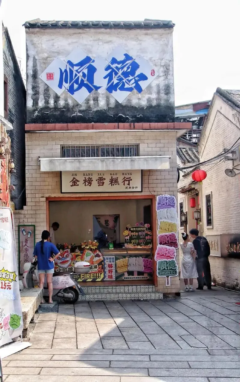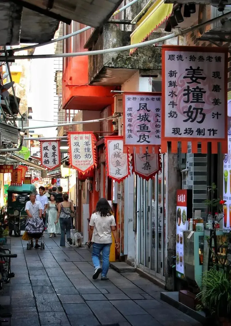 ✅华盖路步行街:顺德美食核心区,老字号云集。民信老铺、仁信老铺的双皮奶是必吃,还有炸牛奶、伦教糕、陈村粉等地道小吃,边逛边吃停不下来。