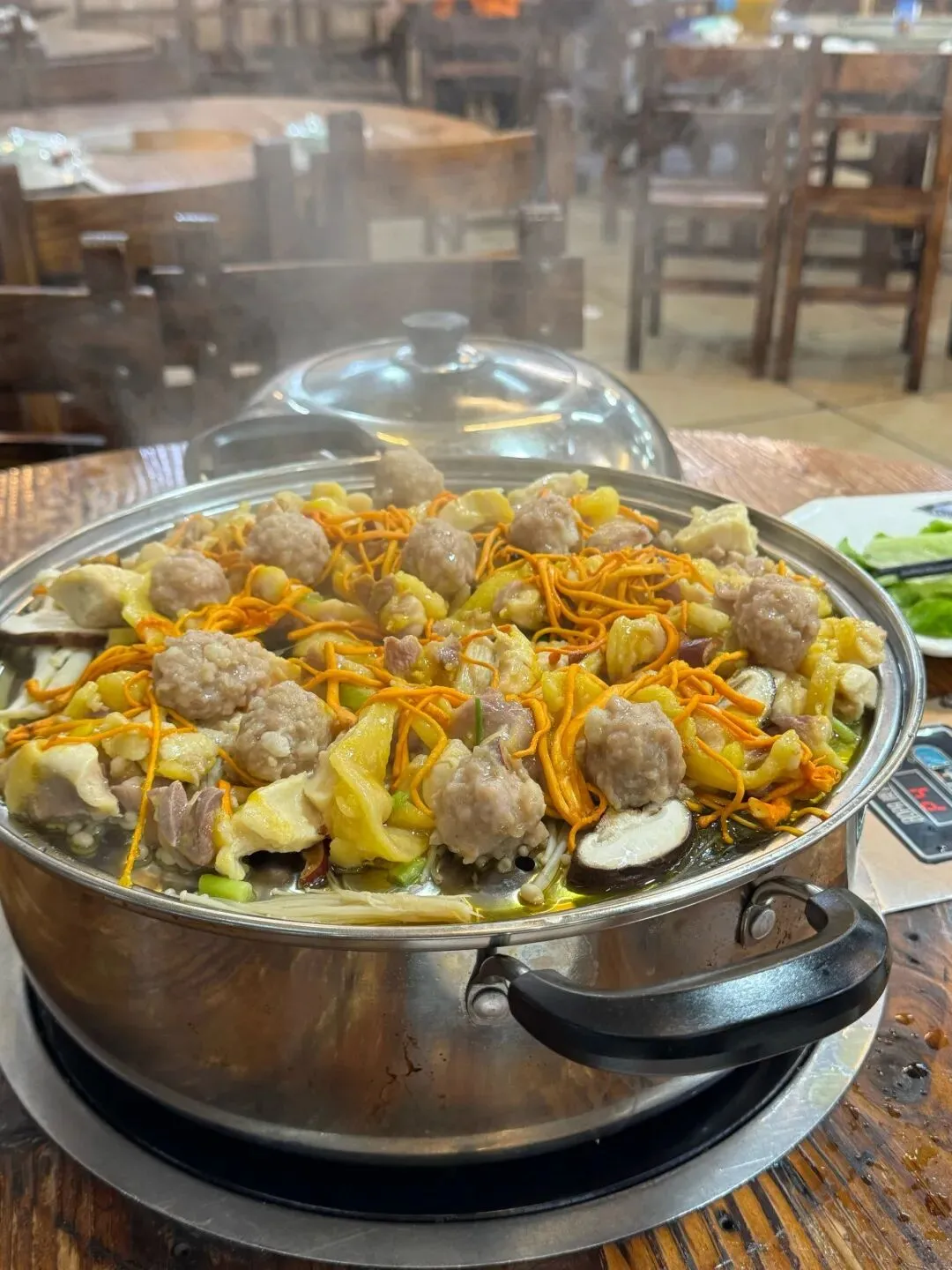 牛肉火锅:杏花吴记的雪花脖兰、八合里海记的吊龙伴配沙茶酱,牛肉嫩滑弹牙。
