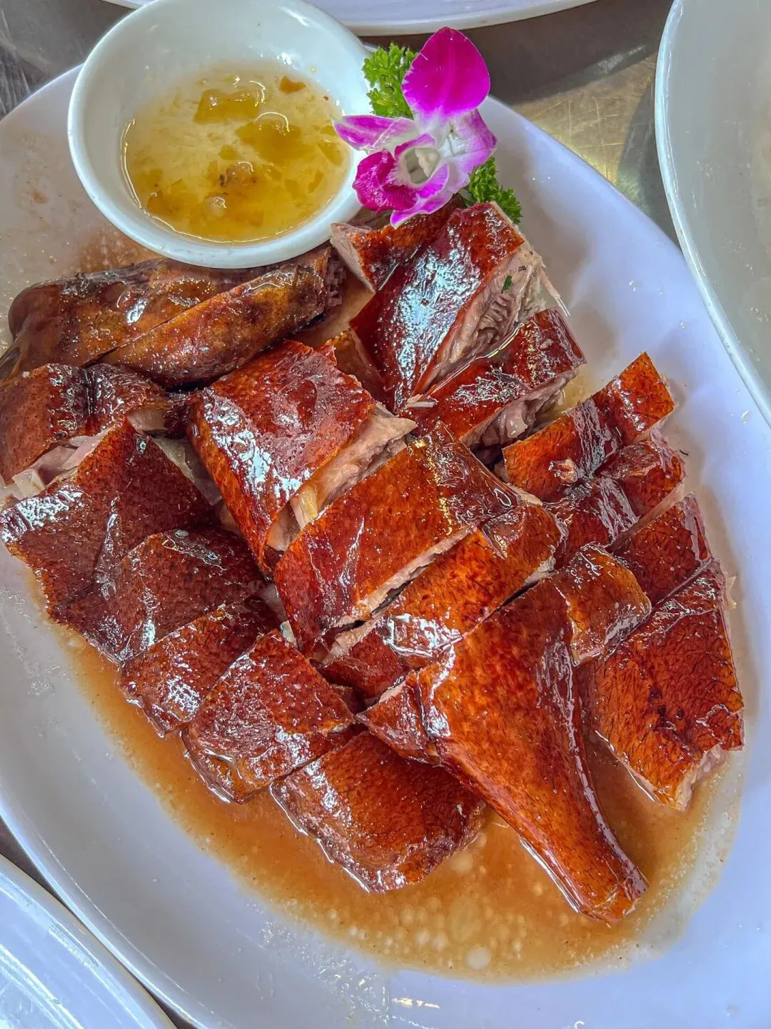 烧鹅:渔家庄的烧鹅皮脆如纸、肉嫩多汁。