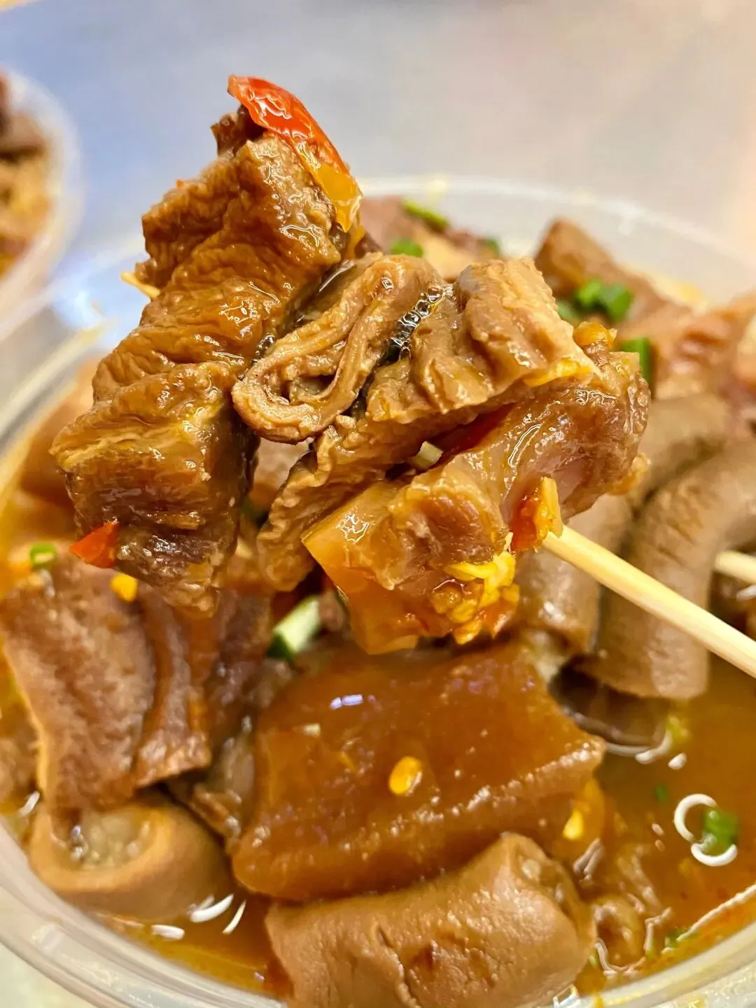 五香牛杂:细妹五香牛杂,华盖里直街三十多年老摊,牛肚牛肠炖得软烂入味。