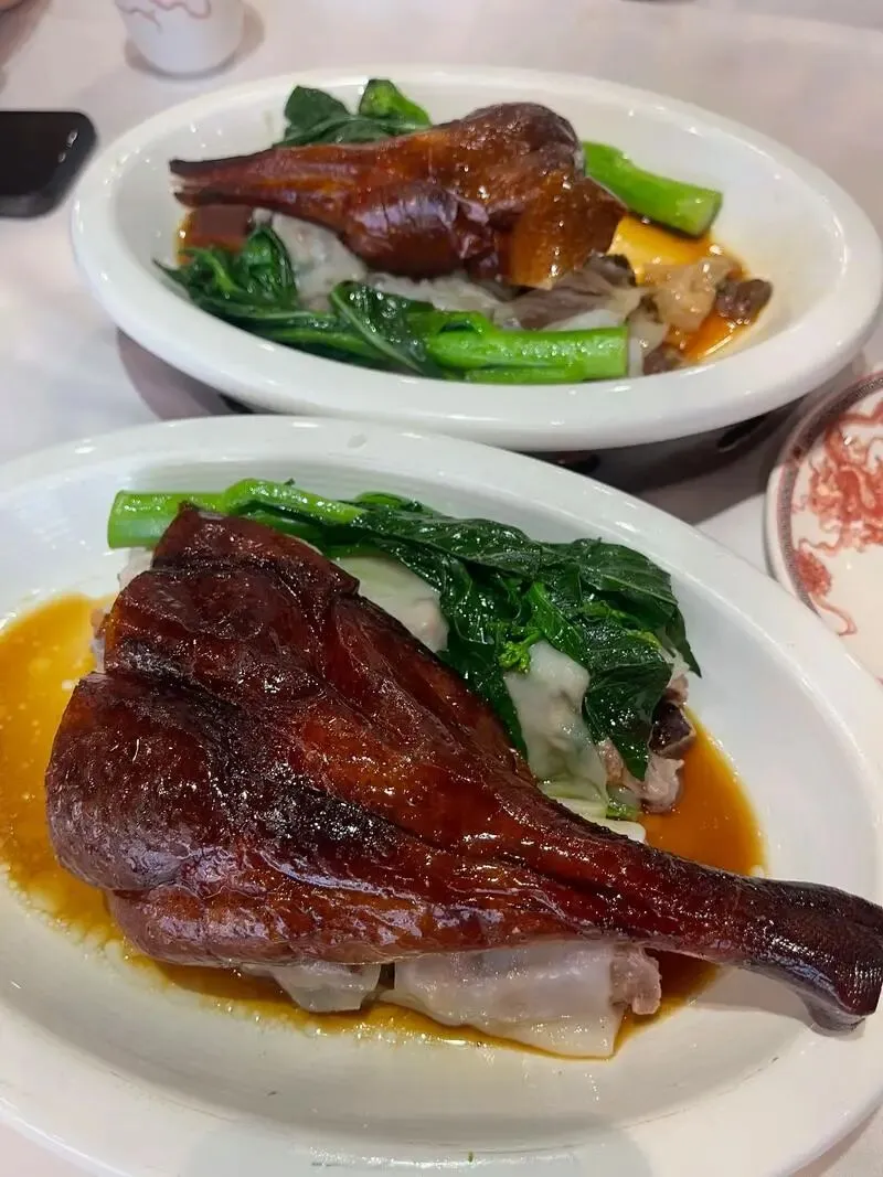 · 烧鹅腿肠粉:肠粉现拉,整只烧鹅腿抱着啃,幸福感爆棚。
